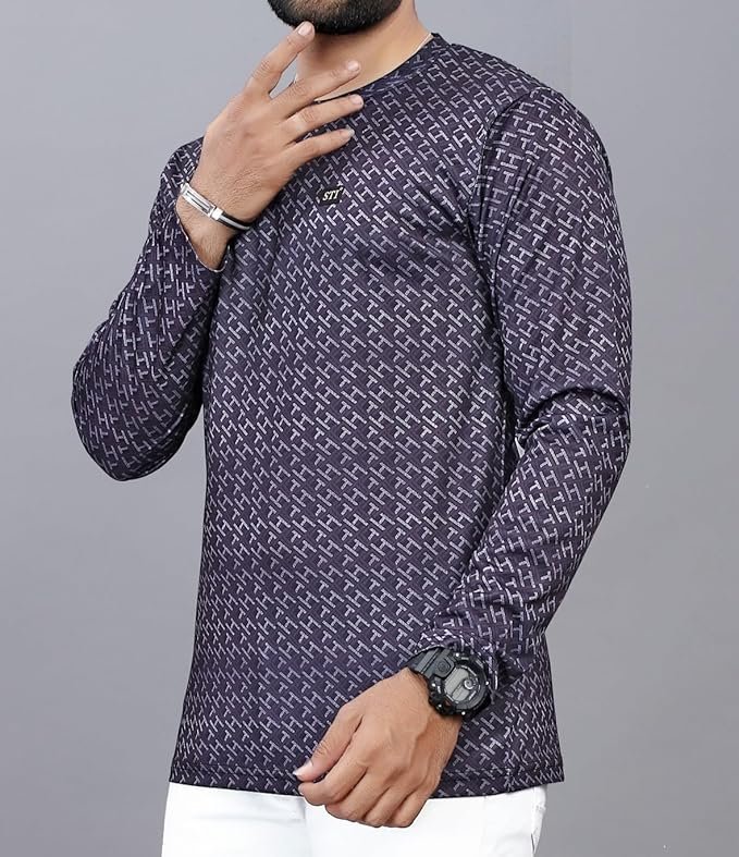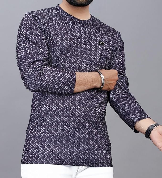 Full-sleeve round neck t-shirt design ensures comfortable wear throughout the day