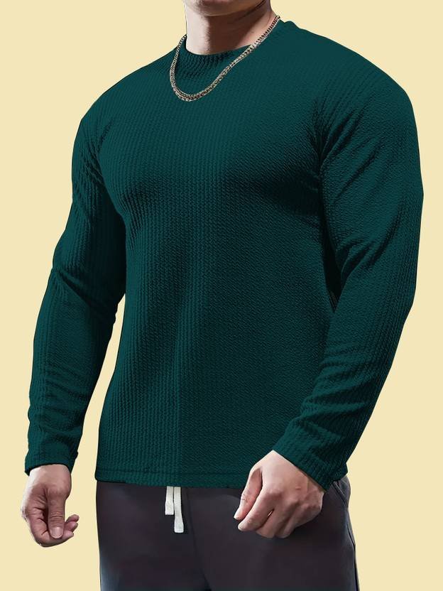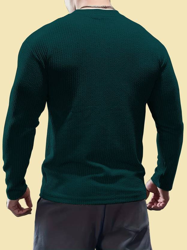 Men’s Self Design Round Neck T-Shirt, Dark Green