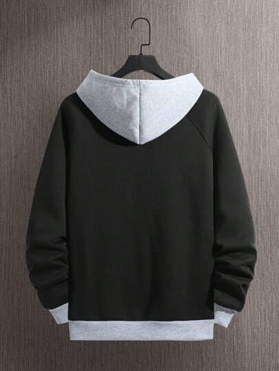Regular Fit Printed Hoodie for Men, Black/Grey