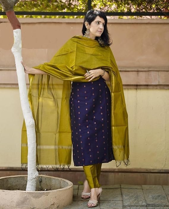 Elegant Silk Cotton Blend ? Made from premium silk cotton fabric, this 3-piece kurta set offers a luxurious feel with lightweight comfort for long wear.